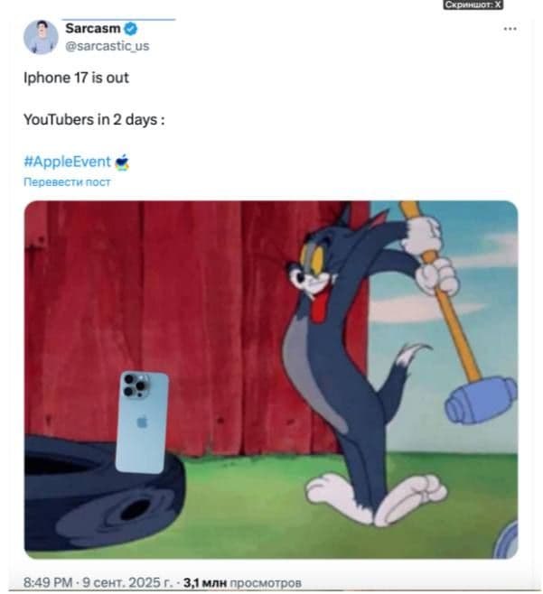 «iPhone 17 is out. YouTubers in 2 days:» = «Вышел iPhone 17. Ютуберы через 2 дня:»