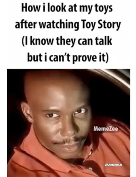 «Как я смотрю на свои игрушки после просмотра „Истории игрушек“ (я знаю, они могут говорить, но не могу доказать это)».
