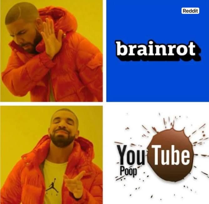 Мем высмеивает людей, которые избегают брейнрот-контента в соцсетях, но при этом с удовольствием смотрят видео формата «YouTube Poop».