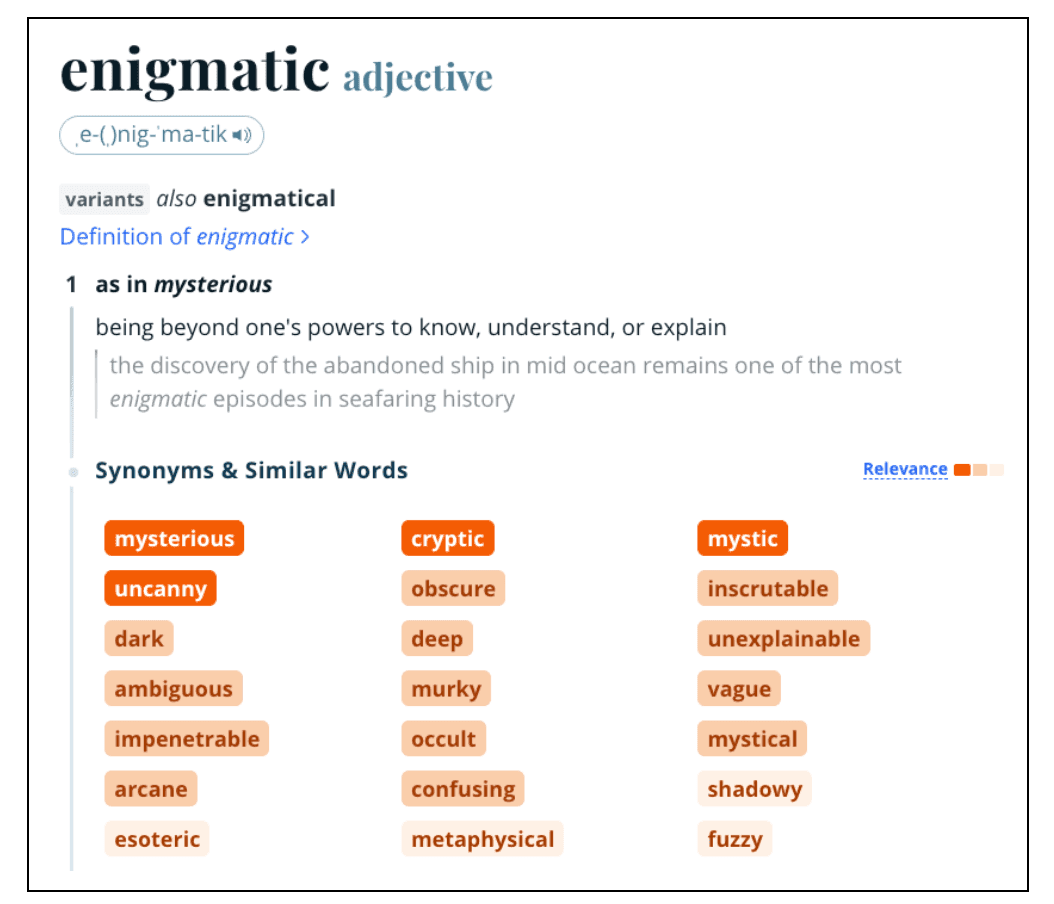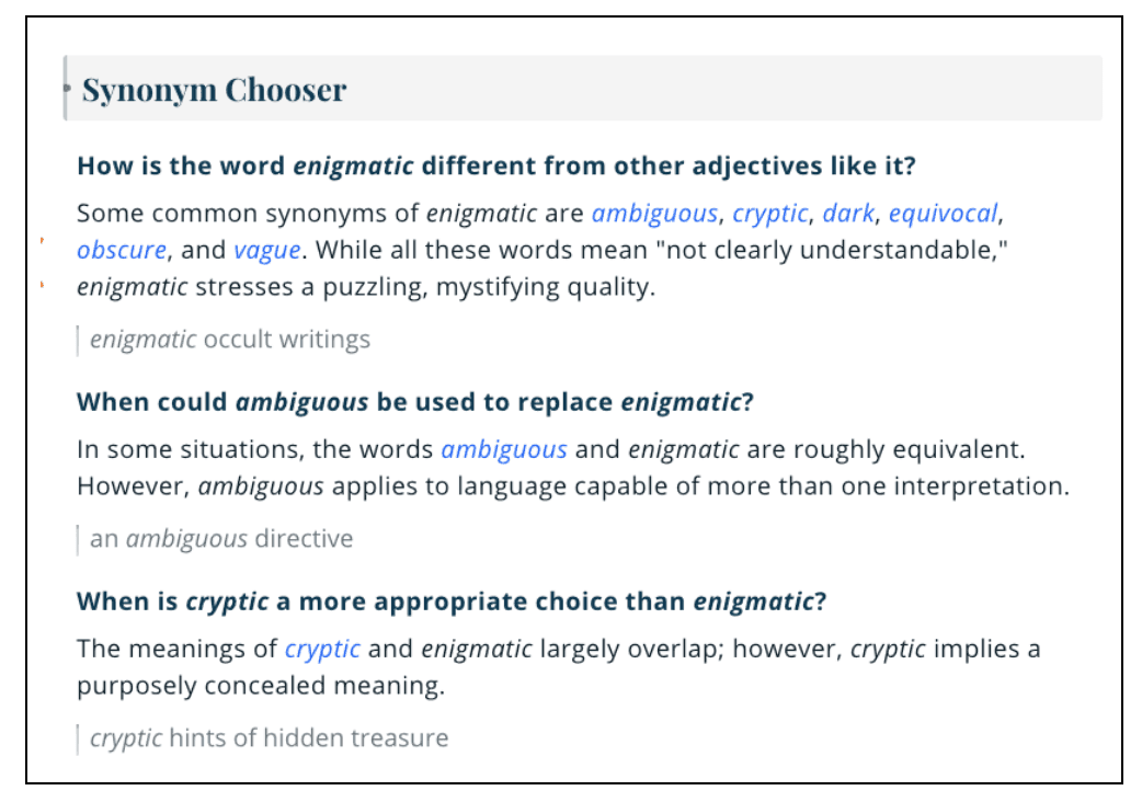 Есть даже описания оттенков значений, чтобы вам было проще выбрать подходящий синоним.